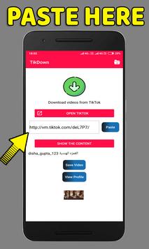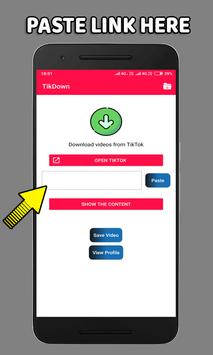 * The app will detect the link automatically or Paste the URL inside the app or just click on Tikdown Download in notification bar.