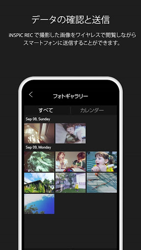 カメラとのペアリング、Wi-Fi接続が可能になります。iNSPiC RECで撮影した写真や動画をワイヤレスでスマートフォンに転送。どんな写真が撮れているかを確認しながら、すぐに共有・編集ができます。カメラのリモート操作も。