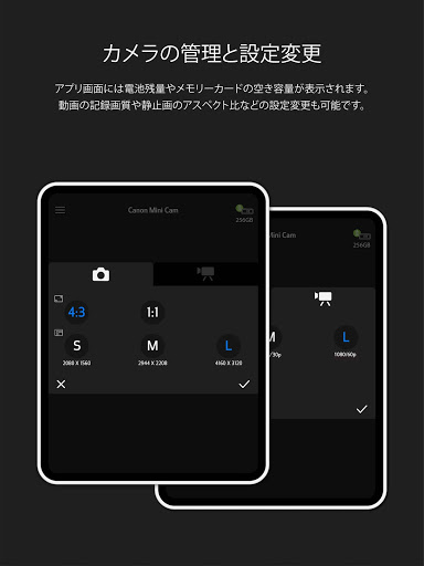 ほかにもカメラの電池残量やメモリーカードの空き容量の確認、カメラの設定変更もこのアプリから。