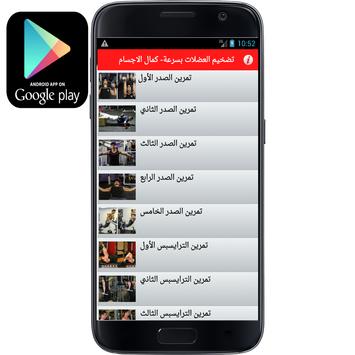 تمارين تضخيم العضلات بسرعة هو عبارة عن تطبيق عربي تجدون فيه برنامج تمارين كمال الاجسام متكامل لتمرين كل عضلات اجسم في أربعة أيام ، مع ذكر كل تمرين و شرح طريقة القيام بذلك التمرين و كذلك إضهار العضلات المستهدفة و ذلك لمساعدتك على تضخيم و تكبير العضلات في وقت قصير. :