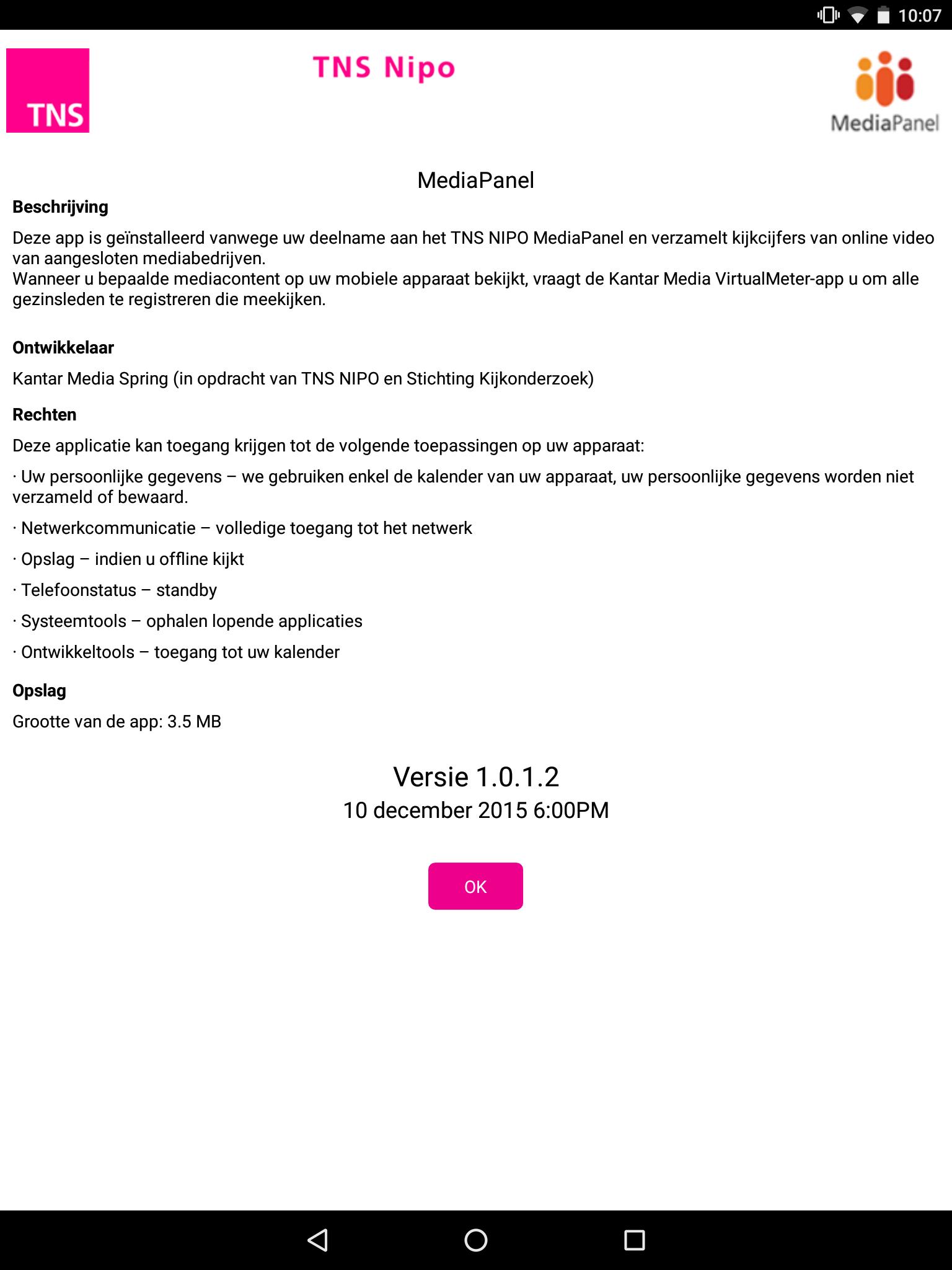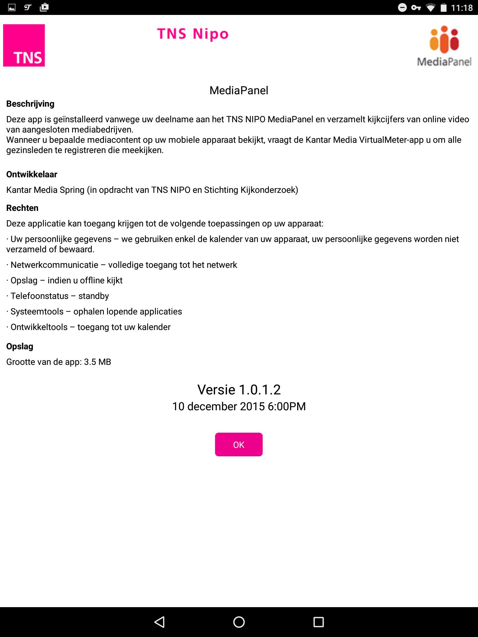 Deze app is geïnstalleerd vanwege uw deelname aan het TNS NIPO MediaPanel.