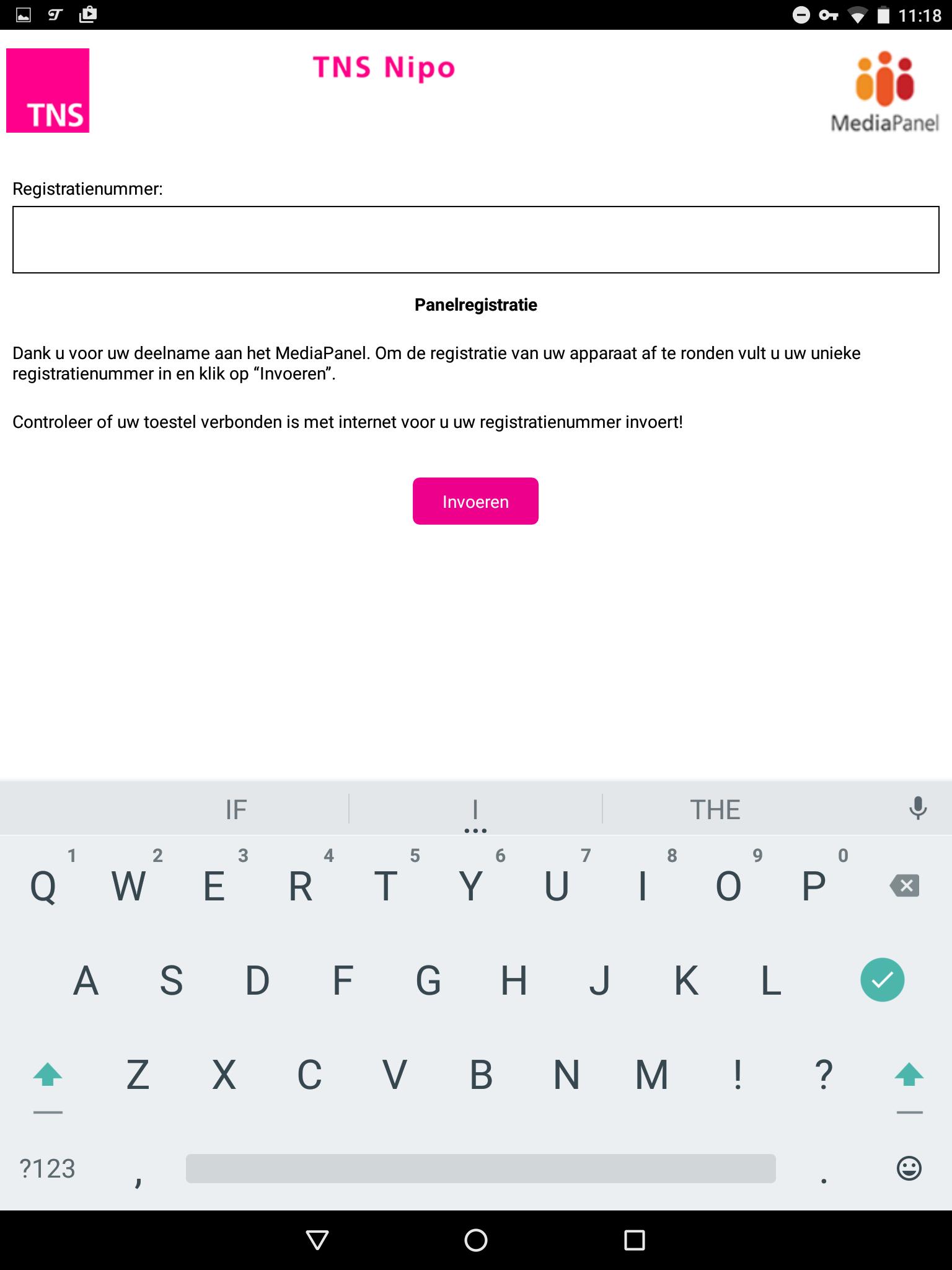Deze app kan alleen worden geactiveerd met toestemming (middels een code) van TNS NIPO.