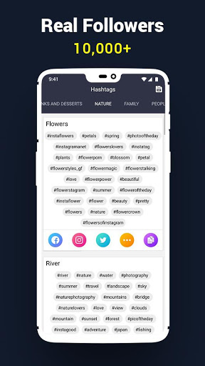 Get more likes & followers is an app help increase likes and follower for your Facebook, Twitter and Instagram account. Add the most relevant hashtags to your Snack video, Instagram, Facebook, Twitter posts to make them visible so you may get more likes.