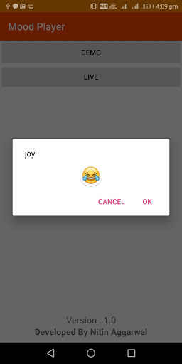 This app analyses your mood by using front camera or either by selecting pictures from the gallery and then generates an audio playlist that matches with your mood. You can download the songs from the playlist once and play them as much as you want. It requires an active internet connection to fetch playlist and download songs. Also, this app has an offline mode through which you can play the songs that you've downloaded.