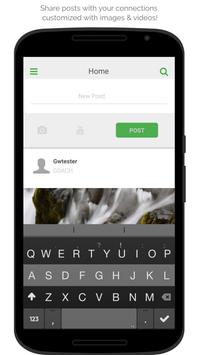 • Newsfeed with text, images, and video sharing.
