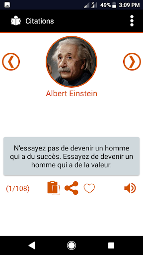 L'application regroupe une sélection des meilleures citations de tous les temps, attentivement sélectionnées, motivantes et variées sur la vie, le succès, le bonheur, l'espoir, la science...