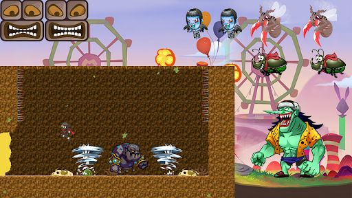 10 개의 환상적인 보스가 8 개의 다른 성 세계에서 게임 (잔인한 전갈, 위험한 고양이 골렘, 무서운 악어 및 빠른 거미), 많은 보너스, 파워 업, 숨겨진 블록 및 항목