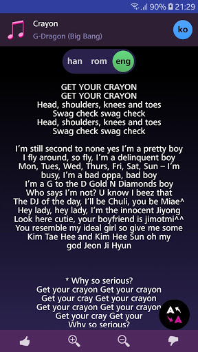 Lyrics for G-Dragon will help you to sing your favourite songs while you have fun with your friends at the local karaoke bar.