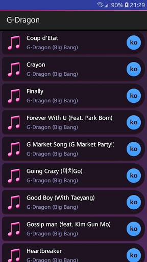 In this application you can find great number of G-Dragon lyrics. This application does not contain audio or video. It only contains the lyrics, the title and the name of the artist.