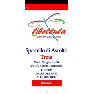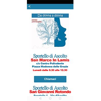 Nombor ketersediaan adalah aktif H24, setiap hari dalam tahun, di seluruh wilayah wilayah Foggia. Pengendali telefon yang didedikasikan untuk perkhidmatan ini memberikan respons pertama kepada keperluan mangsa keganasan jantina dan mengejar, menawarkan maklumat yang berguna dan panduan terhadap perkhidmatan sosio-kesihatan awam dan swasta yang terdapat di wilayah provinsi. Wanita Telefon Anti Keganasan, melalui sokongan kepada mangsa, menyokong kemunculan aplikasi bantuan, dengan jaminan mutlak yang tidak dikenali.