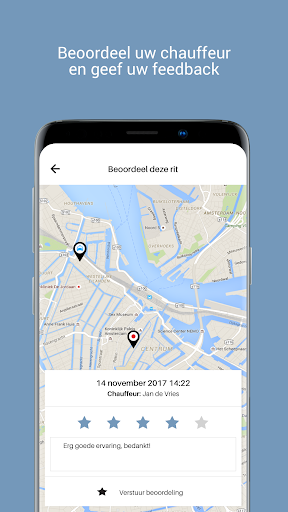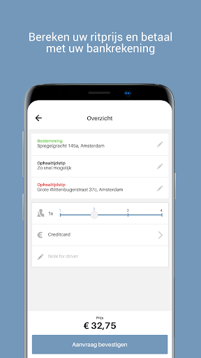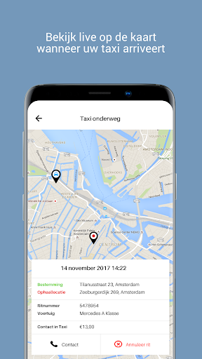 Pesan teksi dengan menekan butang. GPS di telefon pintar anda segera mengetahui di mana anda berada, jadi pesanan sangat mudah. Anda boleh menguruskan tempahan sendiri dan mengubahnya dalam aplikasi jika perlu. Kerana anda boleh mengikuti teksi di peta, anda pasti tahu kapan ia akan berada di depan pintu dan anda tidak perlu menunggu lagi! Anda boleh log masuk dengan mudah dengan akaun media sosial anda, atau masukkan maklumat anda. Sangat berguna: simpan alamat rumah anda sebagai kegemaran!