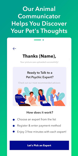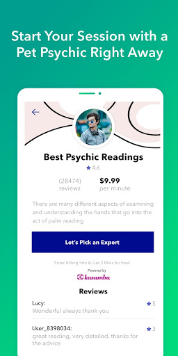 Akhir sekali, dapatkan kejelasan mengenai pemikiran haiwan kesayangan anda menggunakan aplikasi komunikator haiwan kami! Temui pemahaman yang lebih mendalam tentang tingkah laku haiwan kesayangan anda menggunakan Pest Reader kami. Hanya muat turun aplikasi, muat naik foto haiwan kesayangan anda untuk pakar kami untuk menganalisis, dan bercakap dengan pakar dalam talian Psychic Psychic pilihan anda untuk mempunyai semua soalan anda dijawab. 3 minit pertama anda adalah percuma!