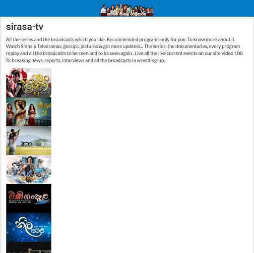 Tonton siri Teledrama Sri Lanka kegemaran anda. Semua adalah siri drama terbaru Sri Lanka. Kemas kini Cepat.