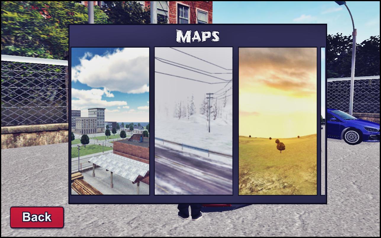 - 6 different maps. ( City, Snowy Mountain, Green Valley, Drift Arena, Desert, Racing. )