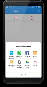 - Share your rank and your points with whatsapp, Facebook, social network and other platform.