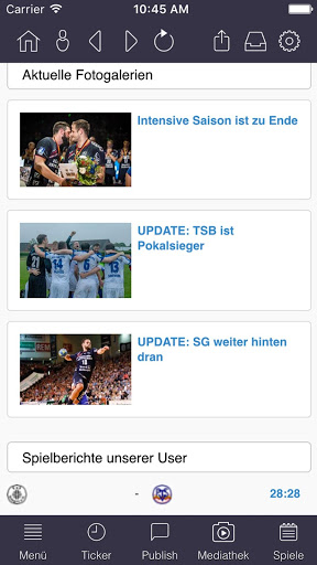 - Publish: Über die Live-Ticker-Funktion erfasst der User alle spielrelevanten Informationen wie Wechsel und Tore, umgehendes Eintragen von Resultaten, Hochladen eines Spielberichts