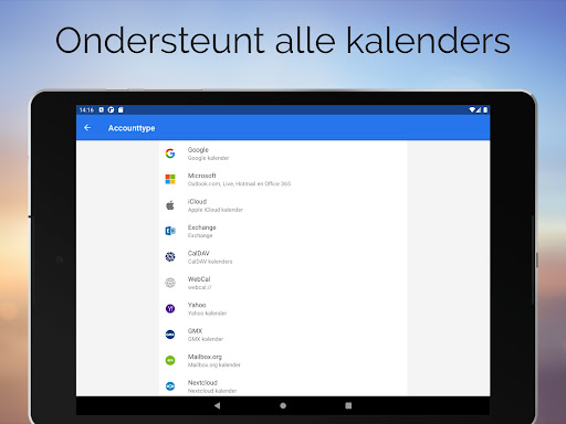 De meest populaire app voor al je kalenders zoals Google, Live, Outlook, iCloud, Exchange, Office365, Yahoo, Nextcloud, Synology, GMX, Mailbox.org, ownCloud en meer. OneCalendar integreert al je online kalenders in een makkelijk leesbaar overzicht. Bekijk en beheer al je afspraken, evenementen en verjaardagen.