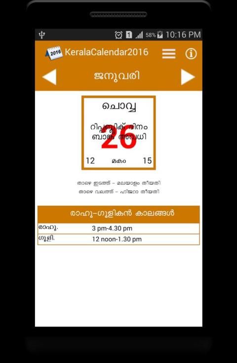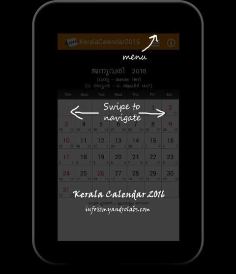 A complete digital calendar 2016 with public holidays, kollavarsham and hijara calendar..