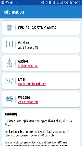 Este aplicativo de verificação de imposto de veículos automotores torna mais fácil para proprietários de veículos motorizados de quatro rodas e quatro rodas para várias cidades na Indonésia.