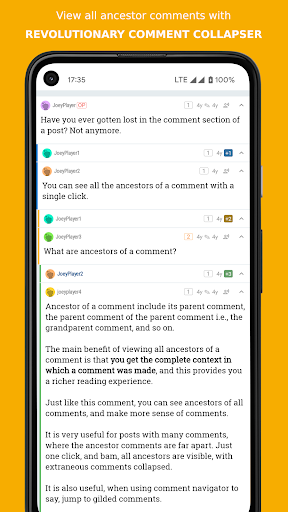 - Veja todosOs ancestrais de um comentário, com uma única torneira. Fácil de rastrear conversas no mar dos comentários.