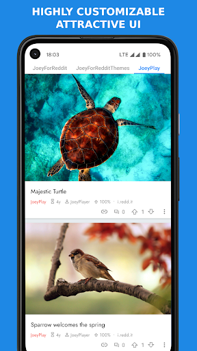 Joey paraO Reddit é um aplicativo Reddit não oficial.