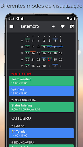 O app mais popular para visualizar todos os seus calendários do Google, Live, Outlook, iCloud, Exchange, Office365, Yahoo, Nextcloud, Synology, GMX, Mailbox.org, ownCloud e mais. O OneCalendar integra todos os seus calendários em uma tela única fácil de entender. Visualize e gerencie todos os seus compromissos, eventos e aniversários.