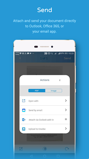 Need a physical file sent to your colleagues immediately? Scan, attach it to your Office 365/Outlook email, and send it in a few taps. Want to back it up in Enadoc? Snap a photo, improve its look, and store the file you just scanned to Enadoc instantly.