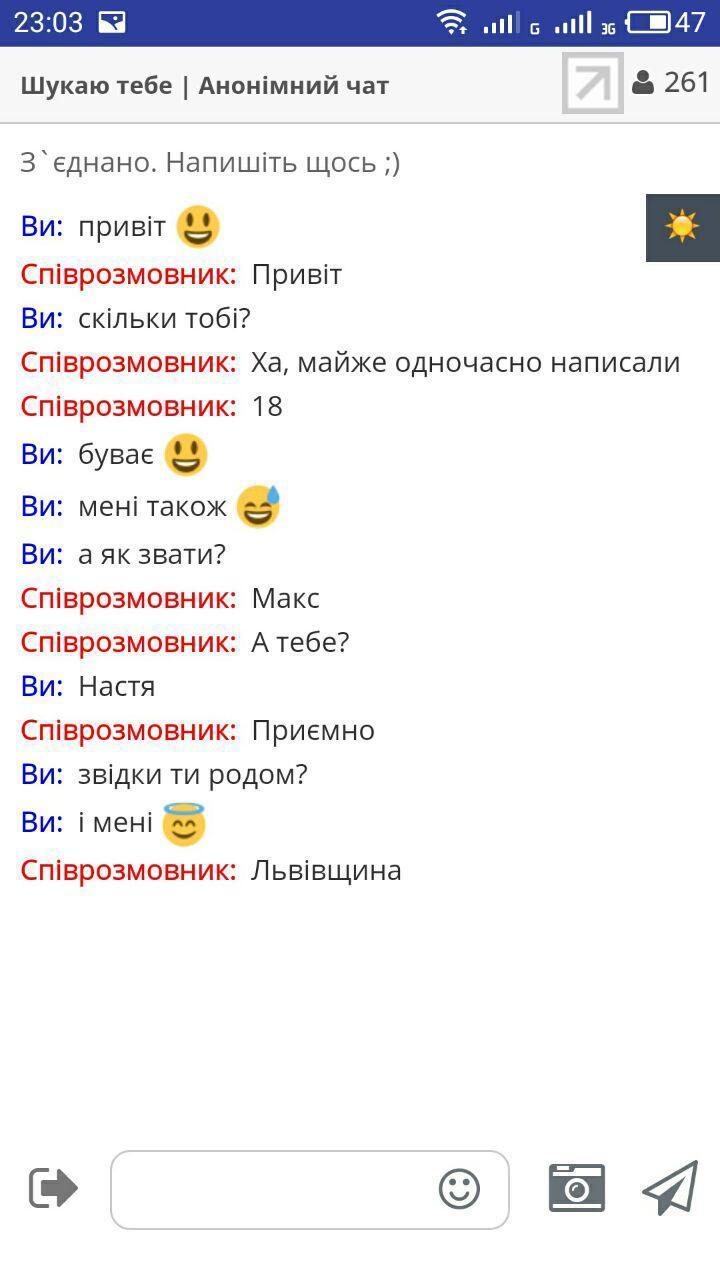 Чат "Looking For You" дозволяє комунікувати тет-а-тет анонімно і без реєстрації. Чат не зберігає повідомлення на сервері і не фіксує імена або IP-адреси. Цілковита адаптивність з мобільними пристроями. Вдалого Вам пошуку цікавих співрозмовників та приємних знайомств. Нехай кожна бесіда відкриває для Вас несподівані емоції і додає гарного настрою. Сподіваємось, наш сервіс стане в пригоді Вам, щоб знайти близьку людину, яка наповнить Ваші дні незабутнім змістом.