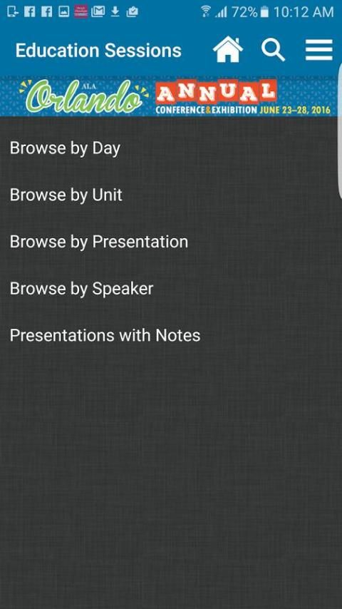 2016 ALA Ежегодная конференция мобильное приложение позволяет просматривать графику, презентации, экспонентов, плакаты и детали динамика от конференции. Пользователи могут делать заметки соседние доступные слайды презентации и рисовать прямо на слайдах внутри приложения. Конспектирования также доступна на плакатах и экспонентов модулей.