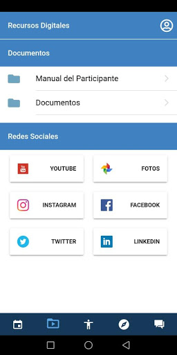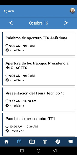 Podrá consultar la agenda del evento y agregar a su agenda los eventos que desee, ademas podrá consultar los documentos del evento para poder descargarlos.