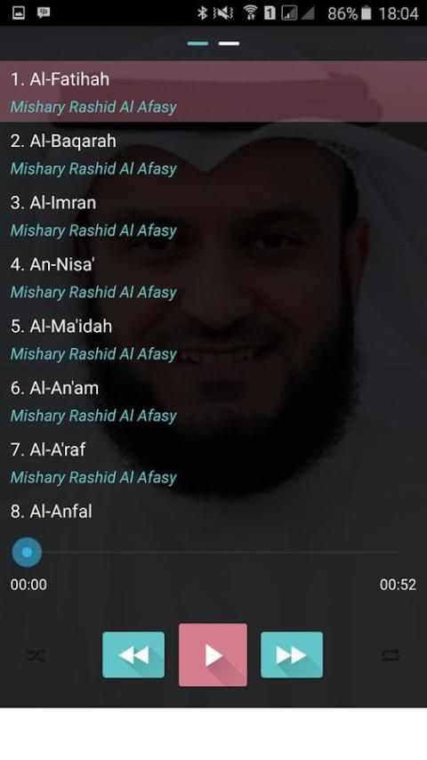 Audio Quran Mishary Alafasy app contains the complete Qur'an Karim in High Quality MP3 audio by the famous Quran reciter Mishari Rashid al-`Afasy.