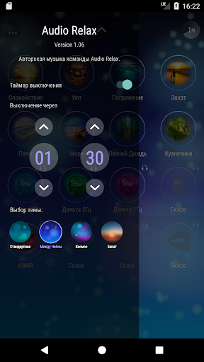 - Таймер отключения c плавным уменьшением громкости звука.