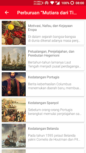 A. Simple User Interface. Interface yang disajikan dibuat sederhana, mudah dipahami namun menarik karena menimbang konten yang akan disajikan adalah edukasi kesejarahan yang umum terkenal dengan kata “membosankan”. kami membangun desain interface berdasar pada madzhab desain Material Design yang dirancang khusus untuk mobile application oleh Google Inc.