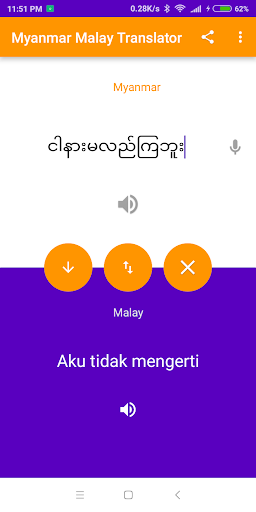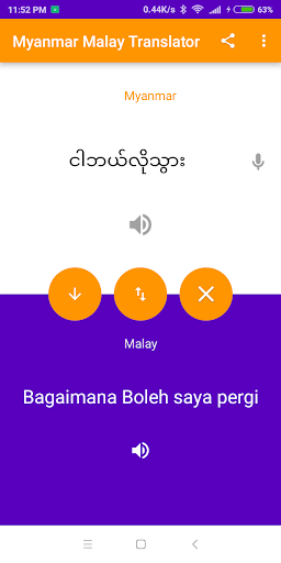 Это приложение - ваш близкий друг, когда вам нужно использовать услуги перевода. Этот бесплатный переводчик поможет вам очень легко перевести из бирманского малайского и от малайско-бирманцев. С его простыми функциями вы можете перевести слова, фразы и даже предложения на секунду. Бесплатный переводчик Burmese-Malay очень полезен с точки зрения повседневной жизни, путешествий и других целей повседневной жизни. Если вы отправитесь на путешествие, не забудьте взять с собой это бесплатное переводчика с вами. Этот переводчик также очень полезен для студентов и простых в использовании с простым интерфейсом.