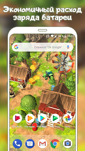- это веселые, бесплатные, анимированные живые обои с потрясающей 3D графикой! Установите эти обои сейчас и огромная, полностью 3D мультяшная ферма оживет на экране вашего телефона или планшета!