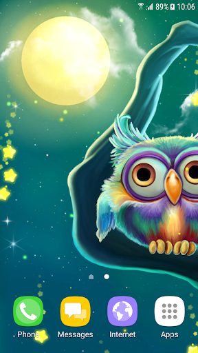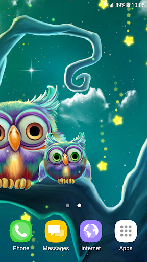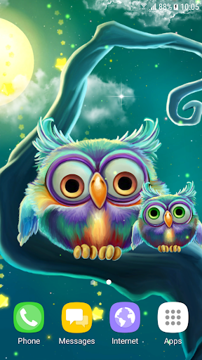 Симпатичные совы живые обои - красивая бесплатная анимированная заставка с анимированными симпатичными совами, которые сидят на ветке старого размашистого дерева, и смотрят на магический звездопад. Установите эти бесплатные живые обои и насладитесь красивым ночным фоном, звёздам небом с полной луной, звездопадом из магических мерцающих звезд, летающими светлячками и огоньками, пушистыми облаками и удивительными анимированными мультяшными совами, которые реагируют на прикосновение к экрану.