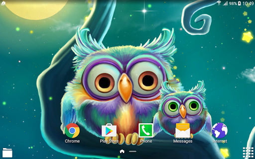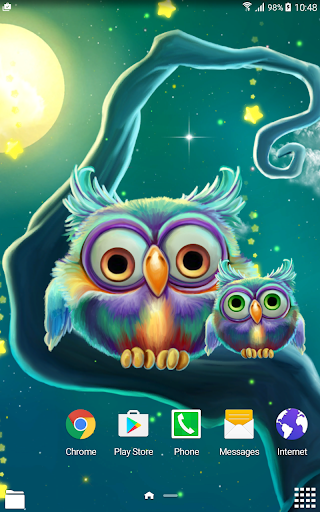 Рабочий стол → Программы → Настройки → Экран → Обои → Главный экран и экран блокировки → интерактивные обои → Симпатичные Совы Живые Обои