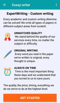 Essay Writer - Custom Writing Service application will help to solve your writing assignments, whether it is a college essay, research paper, dissertation or thesis. Our service provides paper writing at any Academic level: high school, college, university, Master’s and Ph.D.