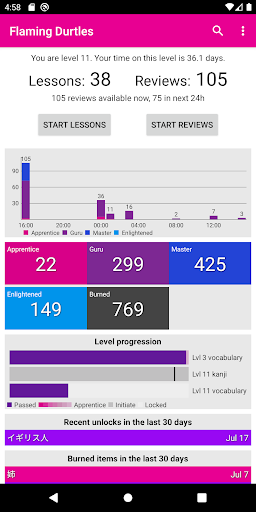 Flaming Durtles - это клиентское приложение для услуги обучения Wanikani Kanji, созданную Tofugu.Вы используете Wanikani, чтобы научиться кандзи?Затем вы можете использовать это приложение для выполнения ваших уроков и отзывов.