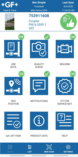 GF Track & Trace - это менеджер на основе активов для трубопроводов.Он регистрирует точное положение всех ваших компонентов и контролирует прогресс установки и качество в режиме реального времени.Использование трека и следа устраняет документы, экономит время и снижает затраты.Все ваши данные централизованно и надежно хранятся в облаке Microsoft Azure.Приложение GF Trace позволяет сборами и совместным использованием данных полевых данных, а также в прямом эфире центральный веб-портал для проверки качества и доступа к последней информации о рабочей площадке.