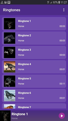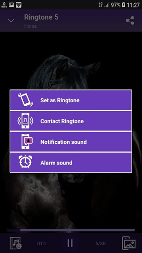 "Лошадь - РИНГТОНЫ И ОБОИ" - Это - Стандартные рингтоны, сигналы сообщений, сигналы будильника, сигналы уведомлений, сигналы SMS-сообщений, сигналы контактов (папа, мама, друг, подруга, сестра, брат и т.д.) и все виды уведомлений и рингтонов.