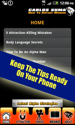 FINALLY: Discover the secrets of how to meet women and how to attract women quickly and easily with Carlos Xuma39;s Dating Advice For Men. This simple but powerful app gives you access to exclusive VIP dating tips and attraction tactics for men from Carlos Xuma www.AttractWomen.com, one of the most respected and effective dating gurus for over 10 years. Gain magnetic attraction with hot, quality women... And get inside secrets to hidden quot;attraction triggersquot; in a woman39;s mind... so you have the unfair advantage in meeting and dating women. Do you see attractive women you want to meet and talk to, but you lose your nerve and never approach her? Are you tired of going out to bars and clubs to meet women and end up drinking alone? Do you get nervous and shy with women, and chicken out when you try to meet women? Would you like to get a girlfriend but you don39;t know what steps to take to make it happen?Are you tired of being the Nice Guy while some other Bad Boy walks away with the women you want? FINALLY Discover the secrets of how to attract women in this exclusive app for your iphone or ipad. Carlos reveals how to attract women and create the kind of desire that will get you success with women that you only dreamed about before. Imagine how your friends will envy you when you discover: How to meet women and talk to women with unique tips, articles, videos and strategies... Flirt with women effortlessly Hidden ways to create instant attraction with women that lasts... How to text a girl and WHAT to text a girl... How to get a girl39;s number, get a date, and get intimate without using creepy pickup lines or fear of rejection... Bulletproof confidence secrets of the men who get women effortlessly and how you can steal their methods... Online dating tips and secrets that only quot;insidersquot; know about... And MUCH much more... Carlos Xuma39;s strategies and techniques for building bulletproof confidence with women, as well as getting guys the women they want, have made thousands of guys into overnight successes in dating and quot;seduction.quot; Since 2002, he39;s been on network television, not to mention Playboy and Maxim radio and many other magazines and radio appearances. Carlos teaches you the Art of Alpha Attraction with women that most men will never discover. live The Alpha Lifestyle: Unleash your masculine confidence to meet any woman, create lasting attraction, and get everything you deserve as a man...