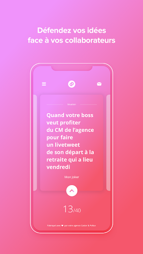 Простое и практичное, это приложение, которое дает вам все карты, чтобы поспорить, убедить и выполнять свой проект. Возьми свою руку на свой проект. Наслаждайтесь простым инструментом, который поможет вам привести в игру! С Джокером вы всегда хорошо вооружены, чтобы защитить свою точку зрения.