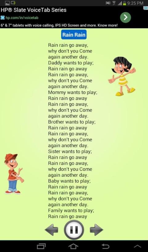 Список аудио Rhymes в этом приложении: