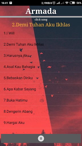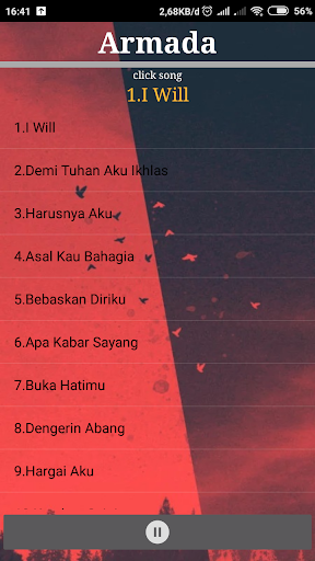 Aplikasi ini berisi kumpulan lagu dari Armada yang kami ciptakan untuk anda nikmati. Anda bisa mendengarkan lagu Armada di waktu santai atau saat anda sedang galau.