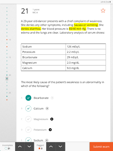 - continuous scrolling through the entire exam