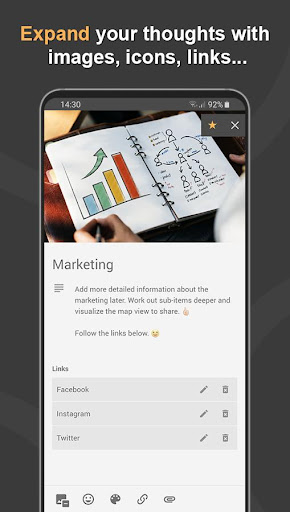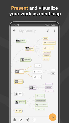 Структура Ваши мысли, собирать идеи или планировать проекты четко в вложенных списках. Затем вы можете легко визуализировать, присутствовать и отправлять их как карты сознания.