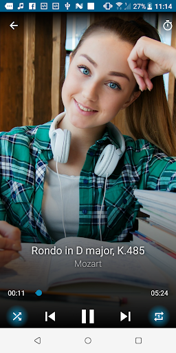 The app has timer, you can set it and go to sleep, the music will be stopped automatically. The app has shuffle mode to play music in random order and repeat mode to play the same song again automatically.
