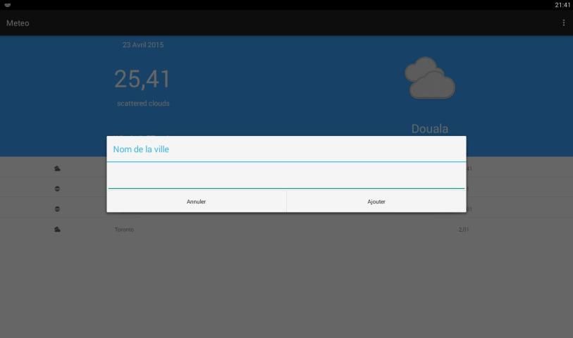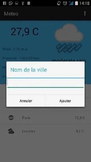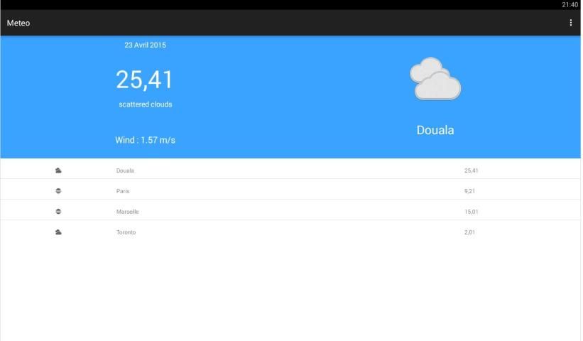 Метеослужбы это приложение, чтобы иметь погодные данные в конкретном городе, Метео использует OpenWeatherMap так, чтобы дать данные о погоде. Погода также проект с открытым исходным кодом, направленные на то, чтобы жизнь проще для всех или тех, кто хочет произвести приложение погоды.