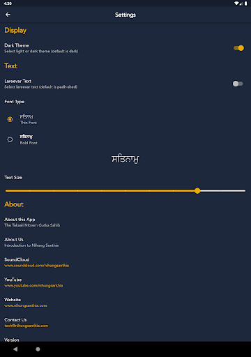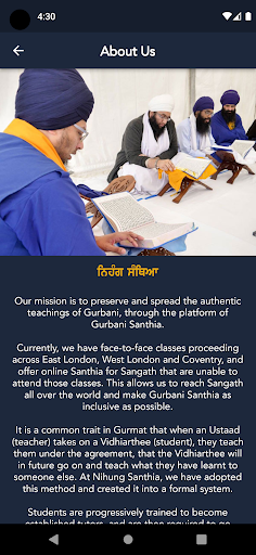 Это приложение является одним из многих ресурсов, предназначенных для студентов Нихун Сантии, чтобы помочь в их Сантии, а также для использования более широкого сангата.Гурбани Паат в этом приложении был основан на Taksali Nitnem Gutka Sahib, опубликованном Гурдварой Шри Акханд Паркаш Сахиб, Бхиндар Калан (Moga).Был также дан основной вишраам (пауза), согласно таксали нитнема, где Панкти (линия Гурбани) разрывается на следующую линию.Мы надеемся включить еще много BANIS и функций в будущем, чтобы служить Сангату как можно больше.